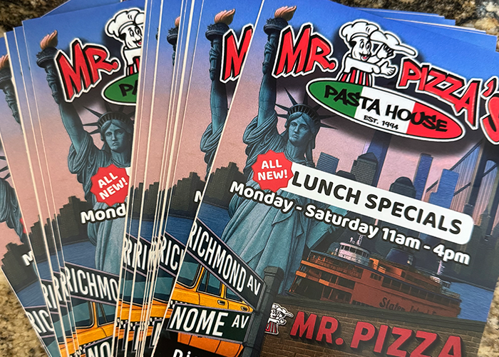 We have created print materials for a wide range of businesses, from pizzerias to construction companies. Each project emphasizes vibrant design, high-quality finishes, and layouts crafted to engage your audience, whether it’s menus, promotional materials, or other custom prints. Our goal is to produce printed pieces that not only look impressive but also drive real results.